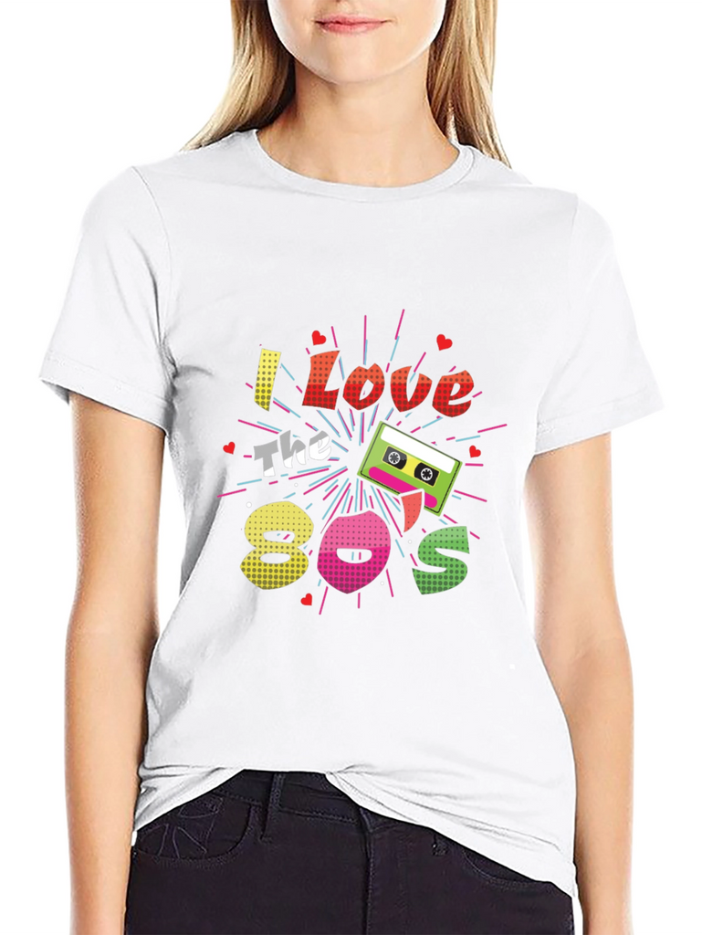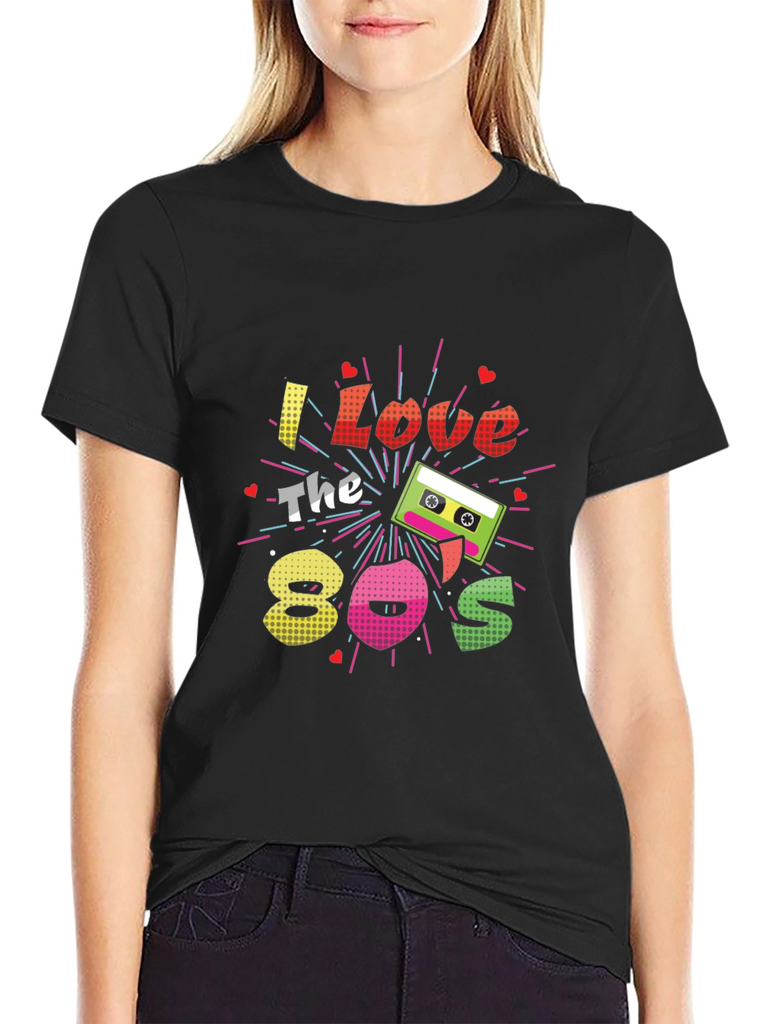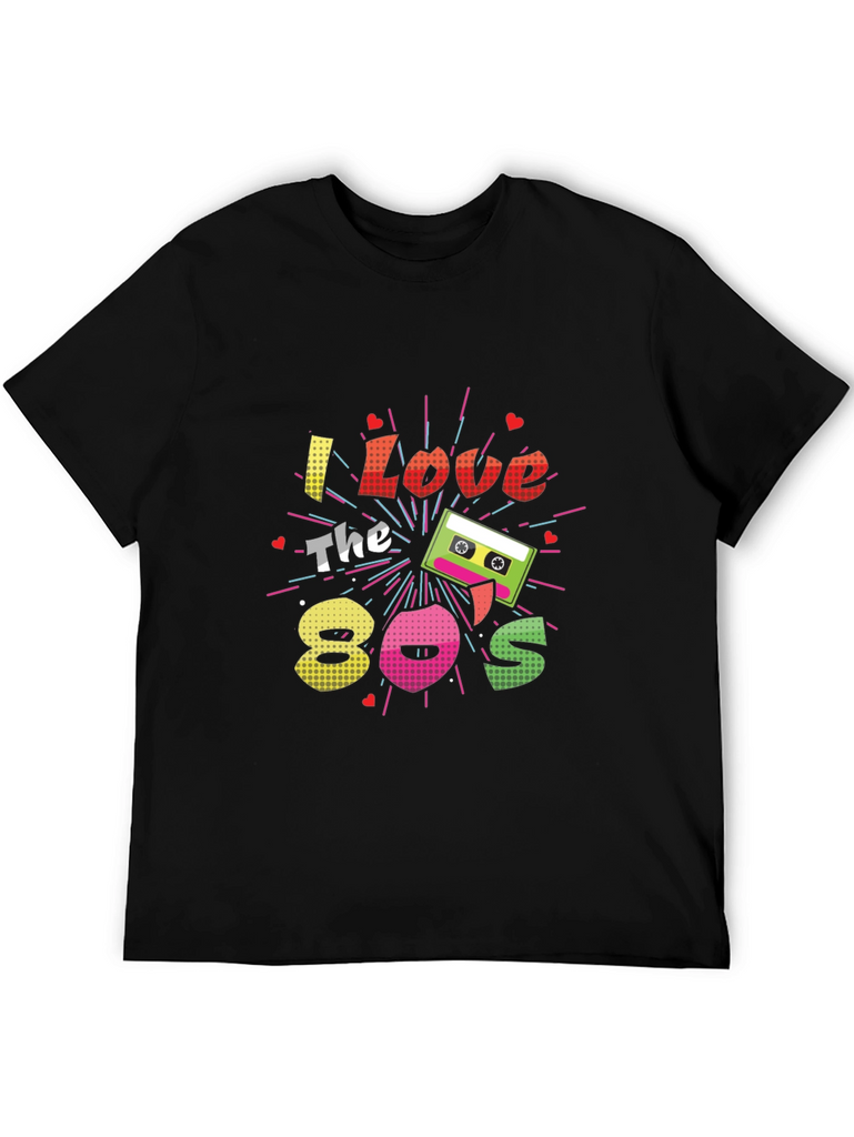 Step back in time with this retro-themed "I Love The 80s" t-shirt. This stylish black tee features a vibrant, eye-catching graphic design that celebrates the iconic era. The design incorporates classic 80s elements like a cassette tape, bold lettering, and neon colors. Made from comfortable materials, this shirt is perfect for casual wear, themed parties, or simply showing off your love for the 1980s. Stand out and make a statement with this unique and nostalgic tee. Grab yours now and rock the retro look!