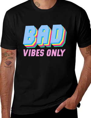 Bad Vibes Only Graphic Tee - Trendy Crew Neck T-Shirt