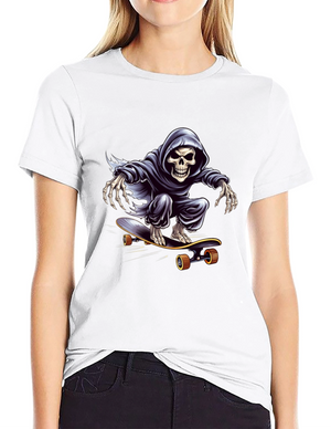 Grim Reaper Skateboarding Graphic Tee - Cool Skeleton Shirt