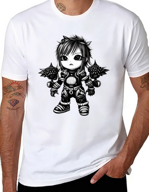 Anime Warrior Graphic Tee - Black Cotton T-Shirt