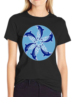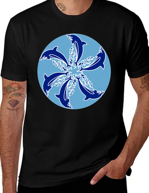 Dolphin Mandala T-Shirt - Black Crew Neck