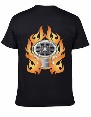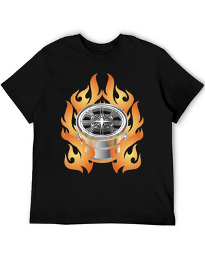 Fiery Wheel Graphic Tee - Bold Automotive Style