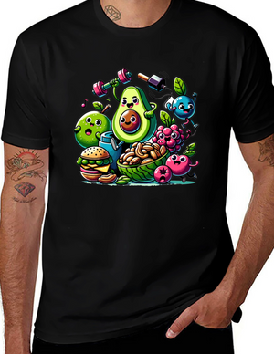 Healthy Food Cartoon T-Shirt: Avocado & Friends