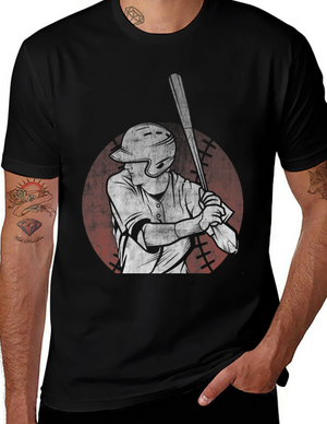 Baseball Player Graphic T-Shirt - Black Cotton Tee