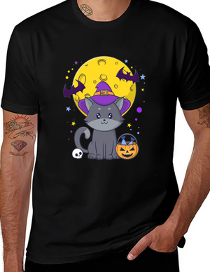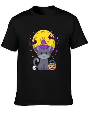 Halloween Cat T-Shirt - Witch Hat Cute Spooky Tee