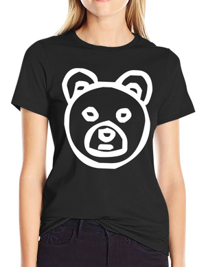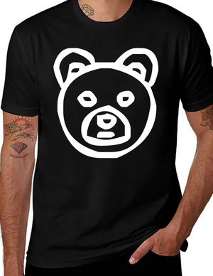 Bear Outline Graphic Tee - Black Cotton Casual Shirt