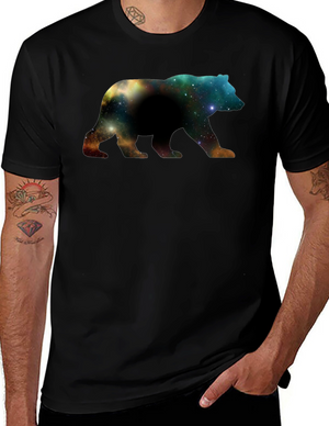 Geometric Bear Graphic Tee - Black Casual T-Shirt