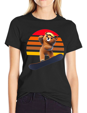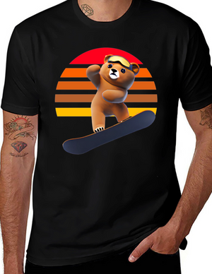 Snowboarding Bear Graphic Tee - Retro Style