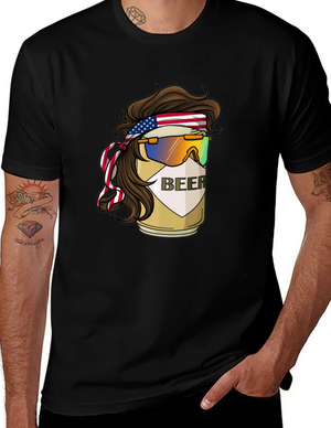 Beer Mullet USA Flag Headband T-Shirt