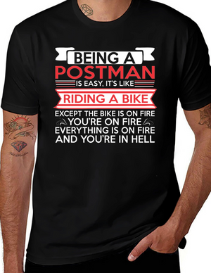 Postman Hell Funny T-Shirt - Bike On Fire