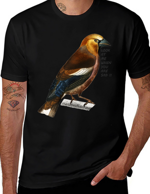 Unique Bird Graphic T-Shirt - Look at Me When You Are Sad!