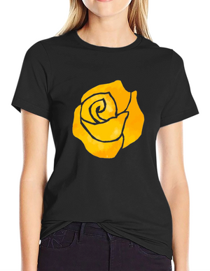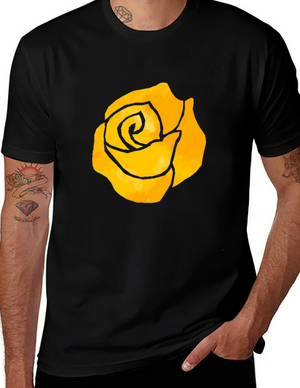 Black T-Shirt with Yellow Rose Graphic