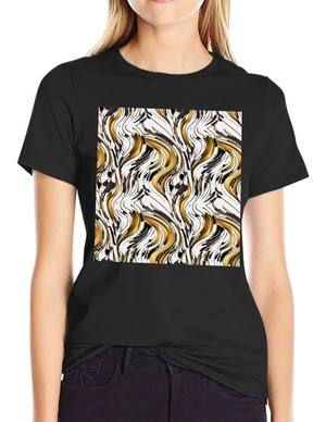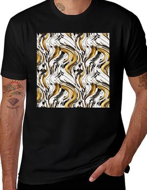 Abstract Gold & Black Swirl Print Black T-Shirt