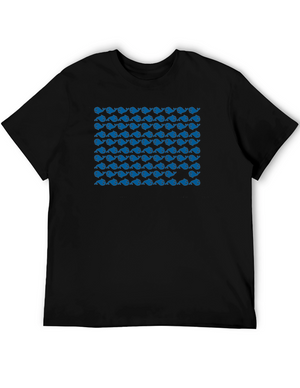 Blue Whale Pattern Black T-Shirt