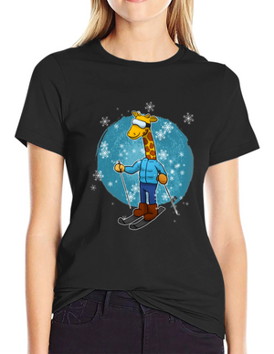 Skiing Giraffe T-Shirt - Winter Fun Apparel