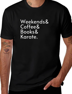 Weekends Coffee Books Karate Black Graphic Tee