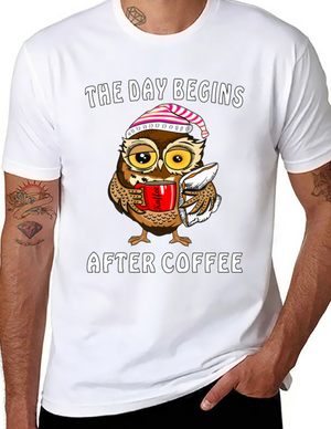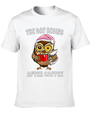 Coffee Owl T-Shirt - The Day Begins After Coffee