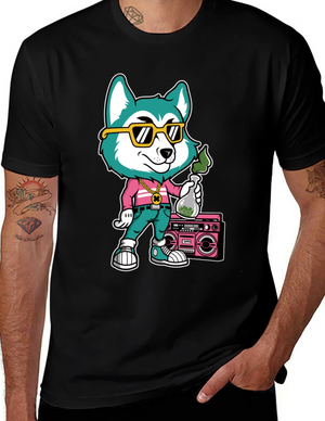 Cartoon Dog Graphic Print T-Shirt - Black