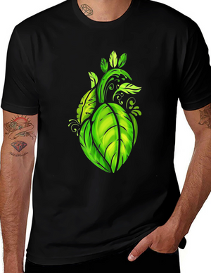 Leaf Heart Graphic Black Tee - Nature Lovers Shirt