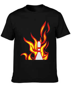 Flaming Bowling Pin Graphic Tee - Strike a Style!