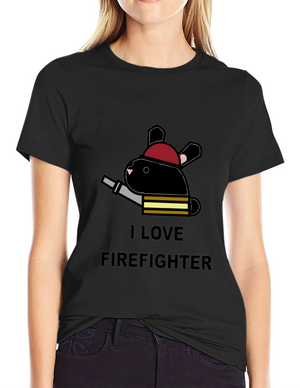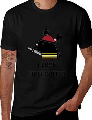 I Love Firefighter Bunny T-Shirt - Black