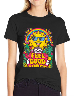 Feel Good Vibes T-Shirt - Summer Sun Rainbow