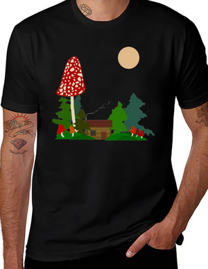Mushroom Cabin Graphic Tee - Nature Lovers T-Shirt