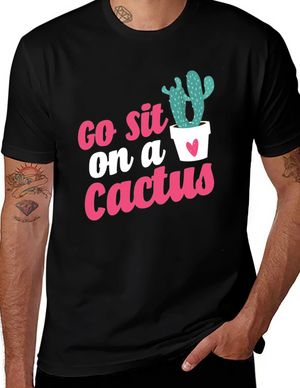 Cute Cactus Graphic Tee - Mens Black T-Shirt