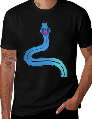 Mens Black T-Shirt with Cartoon Worm Graphic