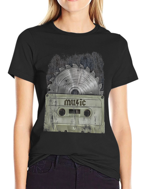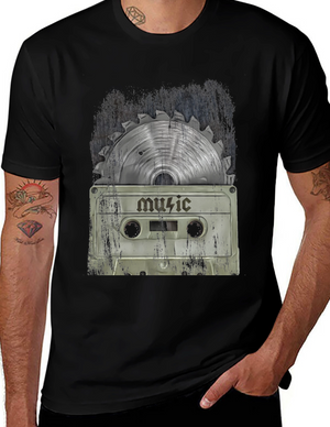 Music Saw Blade Cassette Tape Graphic T-Shirt