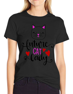 Black Graphic Tee: Tree & Cat Silhouette Design