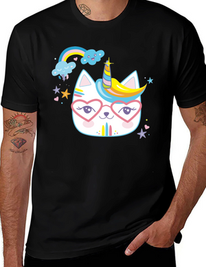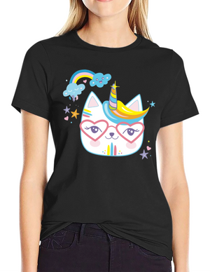 Unicorn Cat Graphic T-Shirt - Black Tee