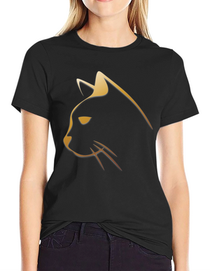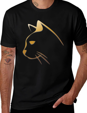 Sleek Cat Graphic Tee - Modern Golden Feline Design