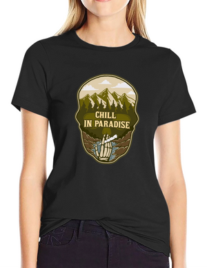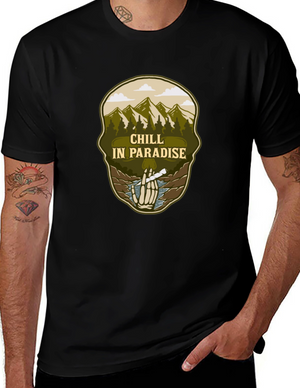 Chill In Paradise Graphic Tee - Relaxed Skeleton Design