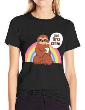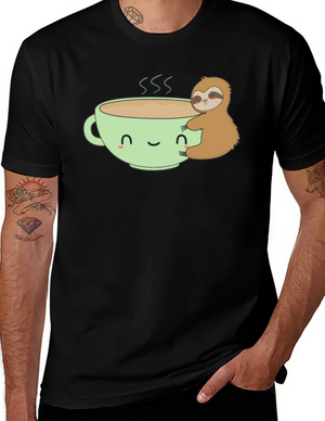 Sloth Hugging Coffee Cup Graphic T-Shirt