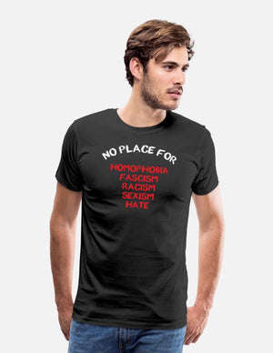 NO PLACE FOR HOMOPHOBIA FASCISM RACISM SEXISM HATE