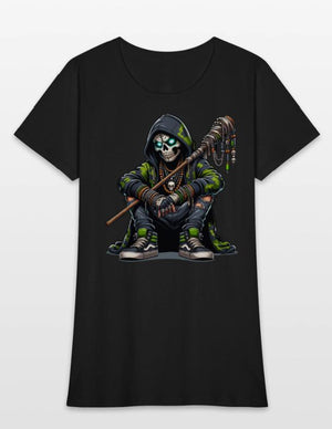Urban Skull Shaman in Camo Hoodie with Tribal Staf