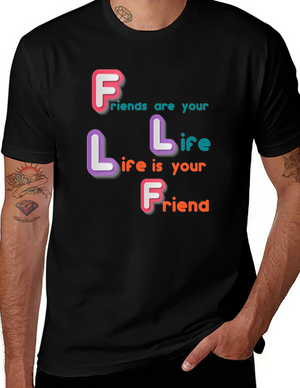 Friends Life Friend Graphic Tee - Black Cotton Casual