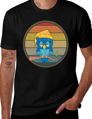 Sleepy Owl T-Shirt Vintage Design Comfort Fit