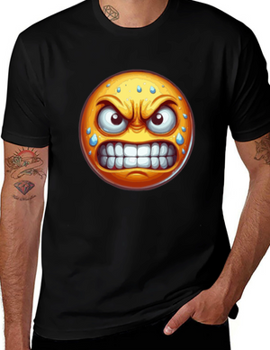 Angry Emoji Graphic T-Shirt - Black Cotton Blend