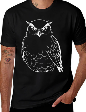 Cool Owl Graphic Tee - Black Cotton T-Shirt