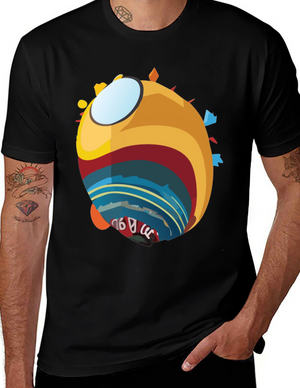 Abstract Globe Graphic Tee - Soft Black Cotton