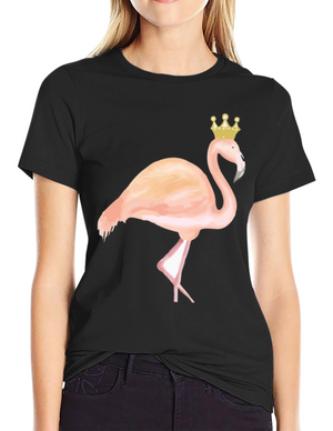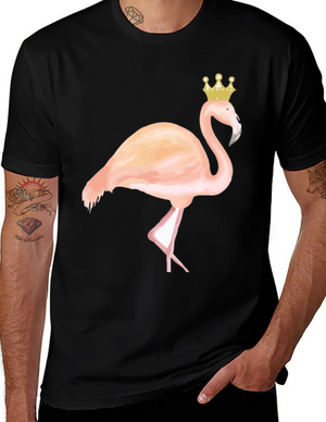 Flamingo Crown Graphic Tee - Casual Black T-Shirt