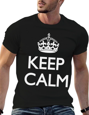Keep Calm T-Shirt: Classic Black Tee with Bold Crown Design