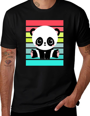 Cute Panda Bear Graphic Black T-Shirt