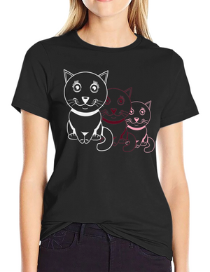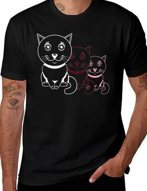 Cute Cat Trio Graphic Tee - Black Cotton T-Shirt