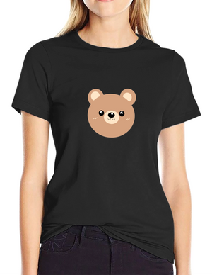 Cute Bear Graphic Tee - Black Cotton Casual Shirt