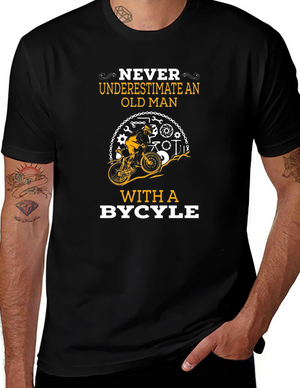 Never Underestimate Old Man with Bicycle Graphic Tee