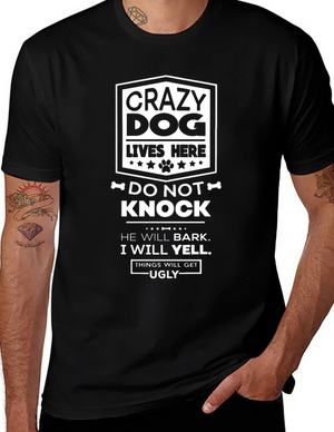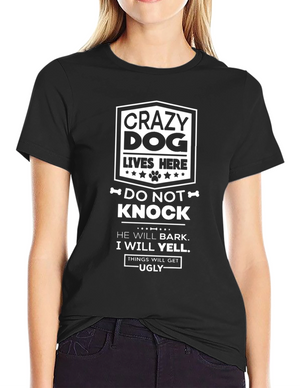 Crazy Dog Lady Black T-Shirt - Cartoon Dog Design