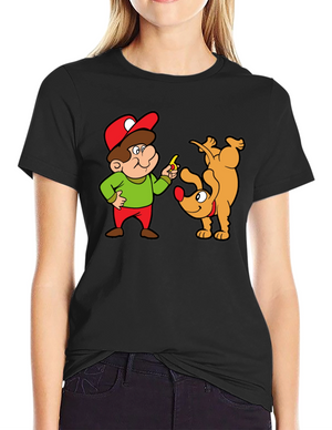 Cartoon Schnauzer Dog Graphic Black T-Shirt